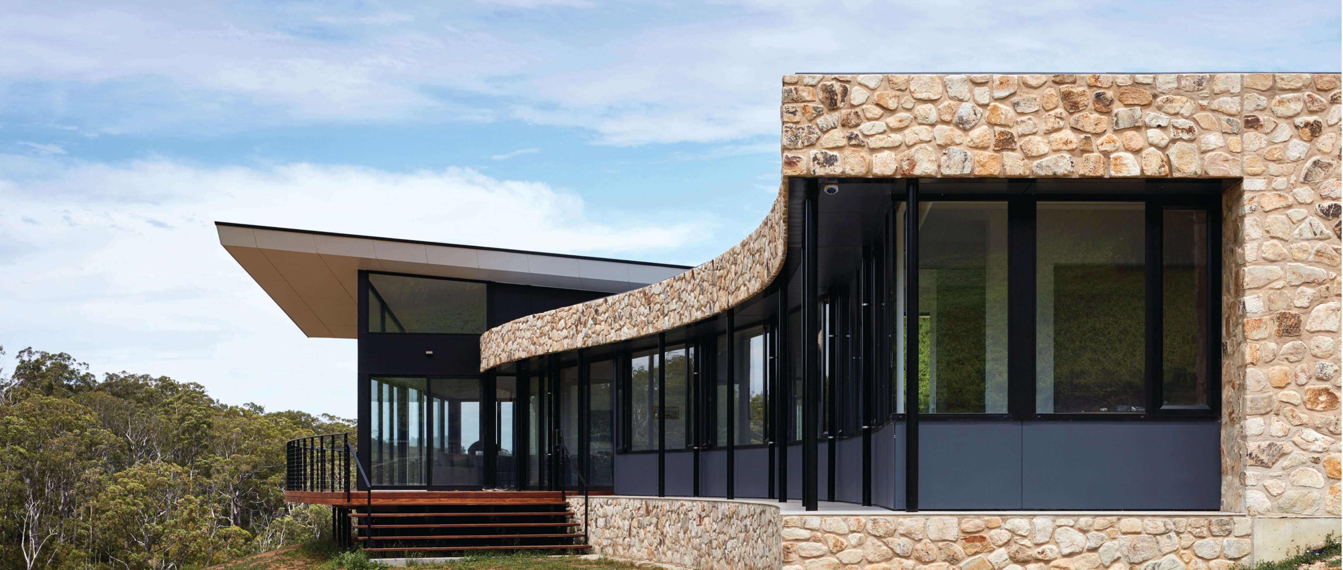 Over the past two years, Hocking Constructions has worked tirelessly to complete this stunning Summertown home. Complementing the natural curves of the Adelaide Hills, this home was built with accuracy and the changing weather patterns in mind. Aerial images of the home reveal its unique shape. A central trapezoid area with curvaceous wings reaching from either side. A home of this proportion requires custom roofing options. To top off the Home with a modern, clean look, Hocking Constructions installed Stratco’s Topdek 700 and Maximus 33 roofing products.