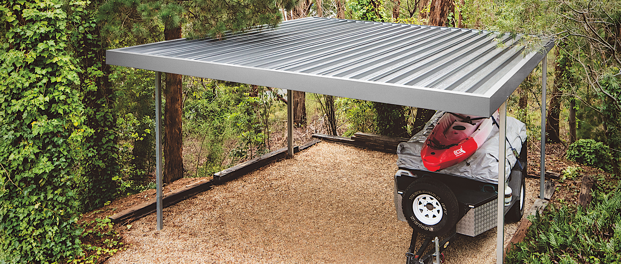 Another option is the Stratco Frontier which can easily suit your lifestyle. Sheild your camper from the elements all year round with easy storage. The frame is made with strong, galvanised C section beams and the roofing is manufactured from high-quality Zinc/Al. The Frontier is an economical option with excellent value for money.